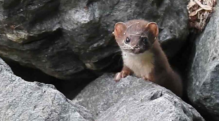 Mary Ellen reports she and Dolly the wonder pup were on their morning walk at Millennium Park in West Roxbury today when Dolly ferreted out a pair of long-tailed weasels, one of which popped up long enough to get its face covered in a spider web before